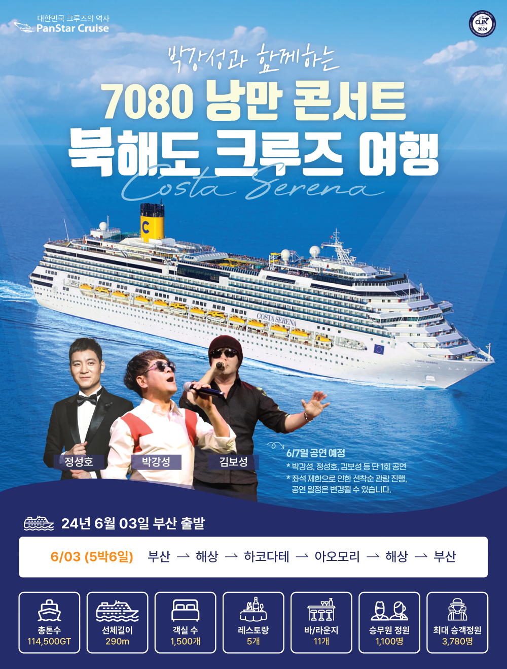 🚨"박강성과 함께하는 7080 낭만콘서트"는 크루즈 전세 선사가 주관하지 않는 별도의 프로그램입니다.