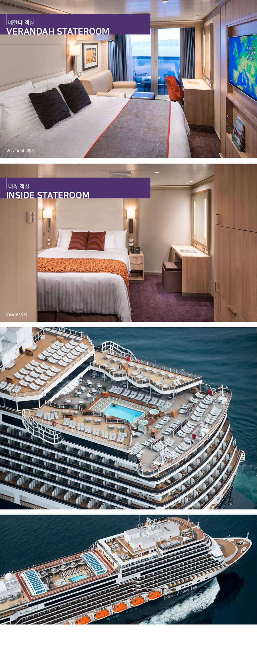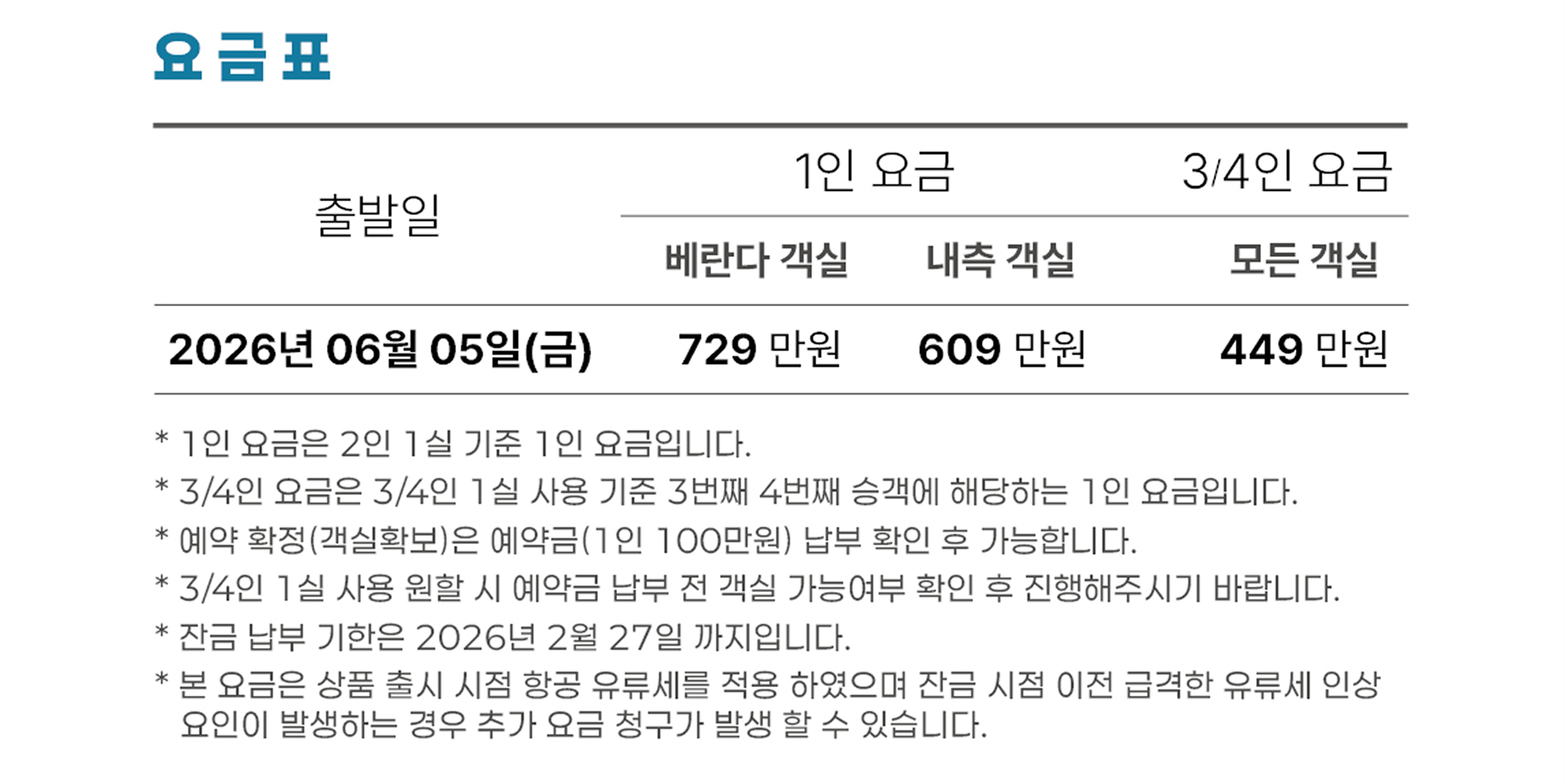 크루즈 7박8일 객실 : 2인 1실 사용기준 성인1인 - 베란다 객실 또는 내측 객실 중 선택 요금