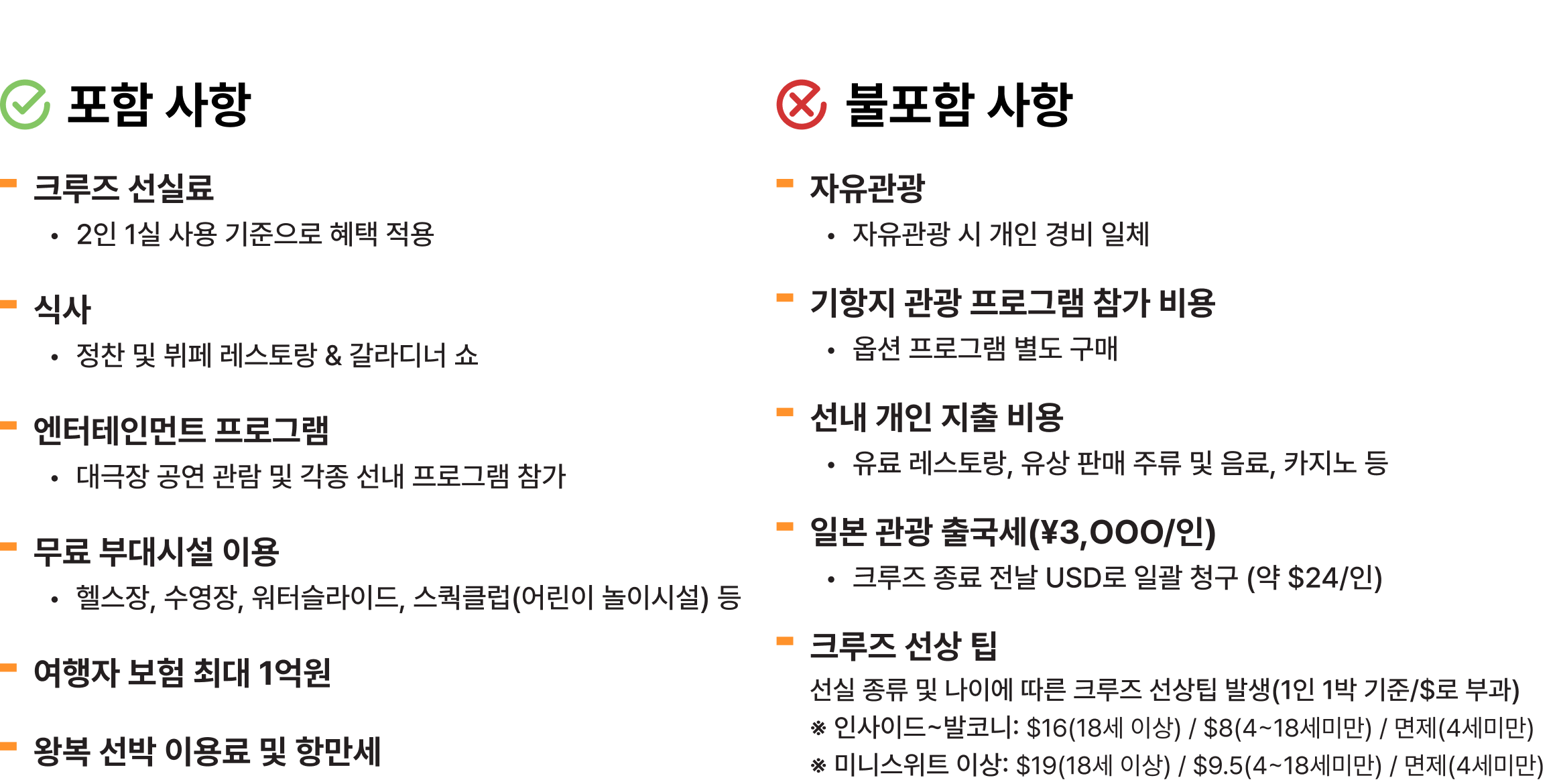 - 안내: 선사에서 달러(USD)로 환산하여 청구하며, 하선 전 선내 계정으로 자동 청구됩니다.(당일 환율에 따라 소폭 변동될 수 있습니다.)